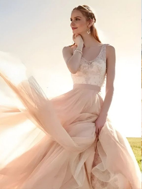 Derin V yakalı, buz mavisi bu ışıltılı abiye nişanlık, gösterişli bir nişanlık giymek isteyen gelin adaylarının tercih edebileceği modellerden. Dikdörtgen vücut tipine sahip bir gelin adayıysan bel kısmındaki oturtma detayı bir illüzyon yaratarak vücudunun daha kıvrımlı durmasına yardımcı olacaktır. Elbisenin romantik havasını tamamlamak için salaş bir topuz yapabilir ya da kırık fön yaptırıp ışıltılı zarif bir taç kullanarak peri kızı gibi bir görünüm elde edebilirsin.