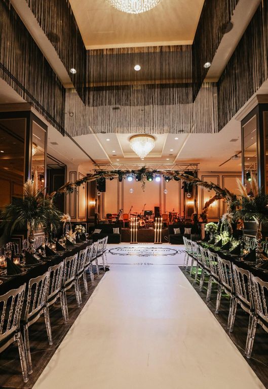 Mekanın dekorasyon anlayışı modern çizgiler ve zamansız bir şıklık üzerine kuruluyor. Siyah ve beyaz tonların ağırlıkta olduğu tasarımlar, lüks detaylar ve görkemli avizelerle zenginleşiyor. Etkileyici ışıklandırmalar ve farklı masa düzenleri after party konseptine tam uyum sağlıyor. Çeşitli sandalye alternatifleri ise davetin tarzına uygun estetik bir bütünlük oluşturuyor.