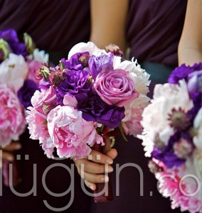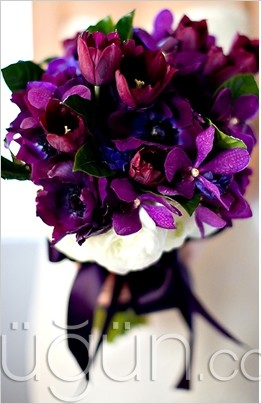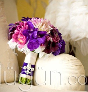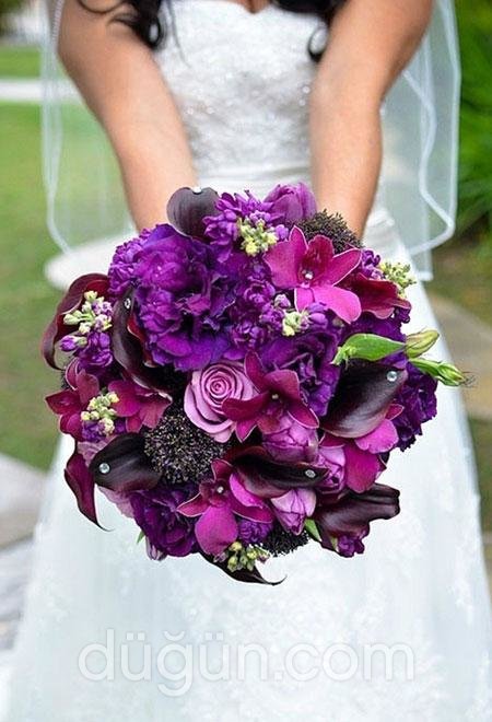 Mor rengi tüm tonları ile çok seveceğiniz gelin buketleri