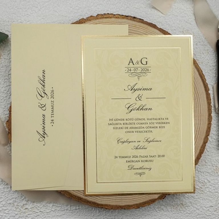 - Altın varak detayı davetiye tasarımına ışıltı ve şıklık katar.