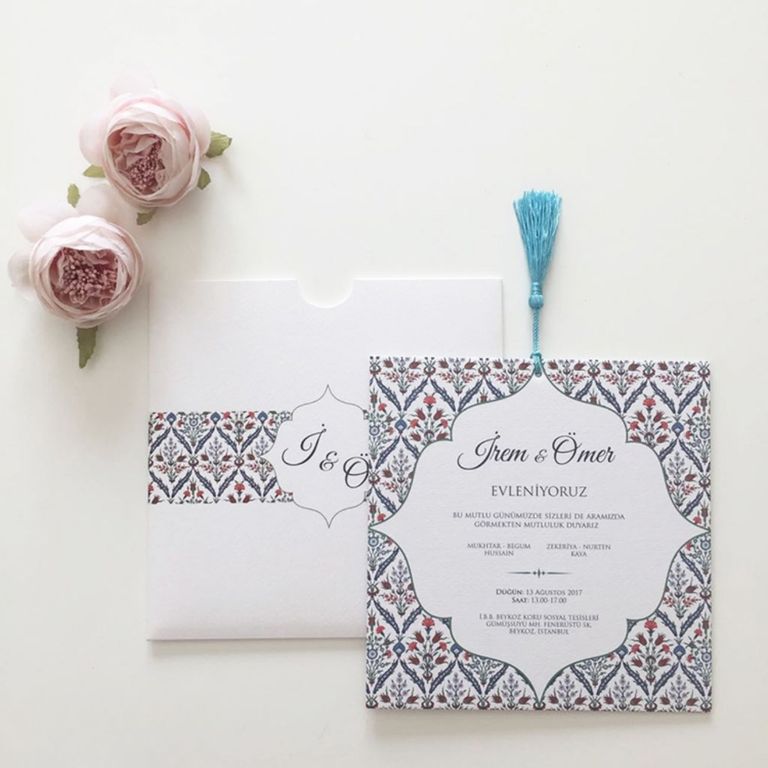 Çini Desenli Püskül Detaylı Davetiye Modeli