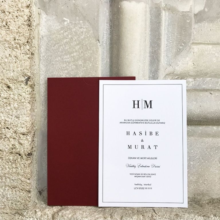 Bordo Zarflı Sade Davetiye Modeli Sade Düğün Söz - Nişan Davetiye
