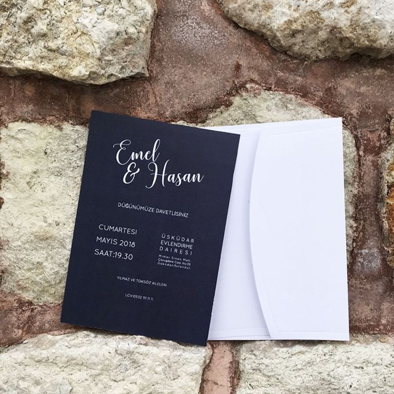 - Sade davetiye, minimal tasarımıyla yazı ve grafik detayların net şekilde öne çıkmasını sağlar.