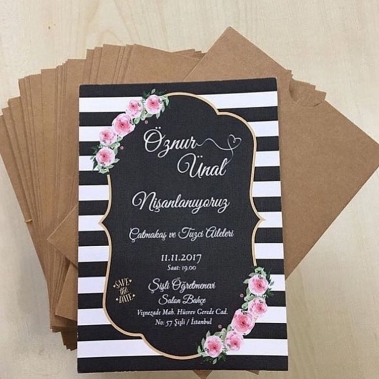 - Çiçekli davetiye, floral desenleri ve renkli detaylarıyla davete romantik ve yumuşak bir atmosfer kazandırır.