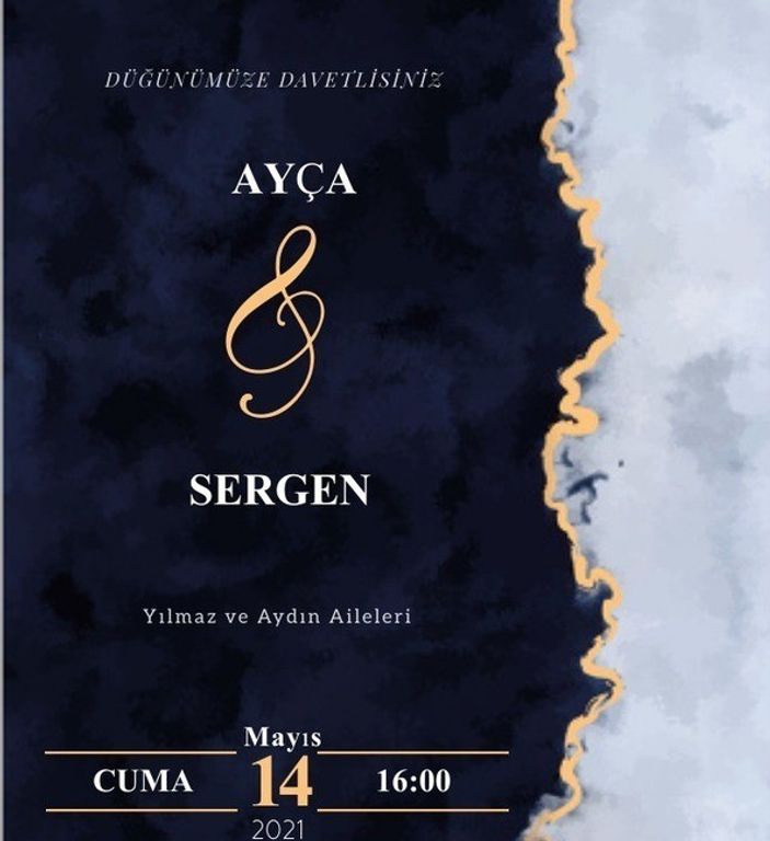 Koyu Fon Üzerine Altın Varaklı Davetiye