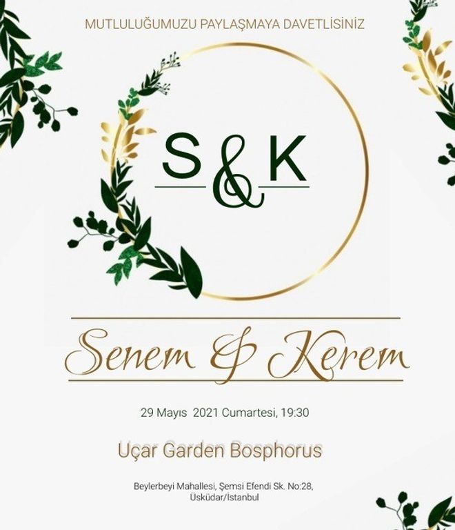 Yeşil ve Gold Detaylı Sade Davetiye