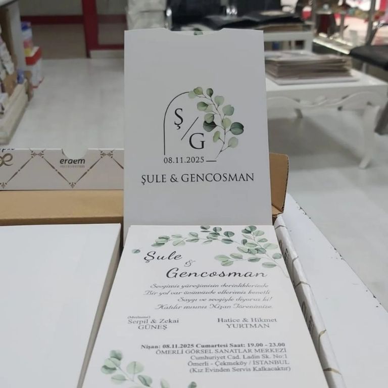 - Çiçekli davetiye, floral desenleri ve renkli detaylarıyla davete romantik ve yumuşak bir atmosfer kazandırır.