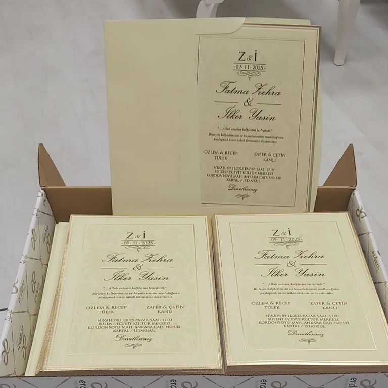 - Sade davetiye, minimal tasarımıyla yazı ve grafik detayların net şekilde öne çıkmasını sağlar.