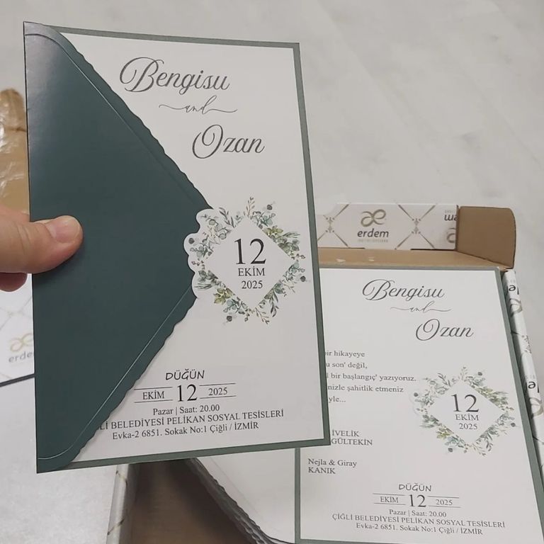 - Çiçekli davetiye, floral desenleri ve renkli detaylarıyla davete romantik ve yumuşak bir atmosfer kazandırır.