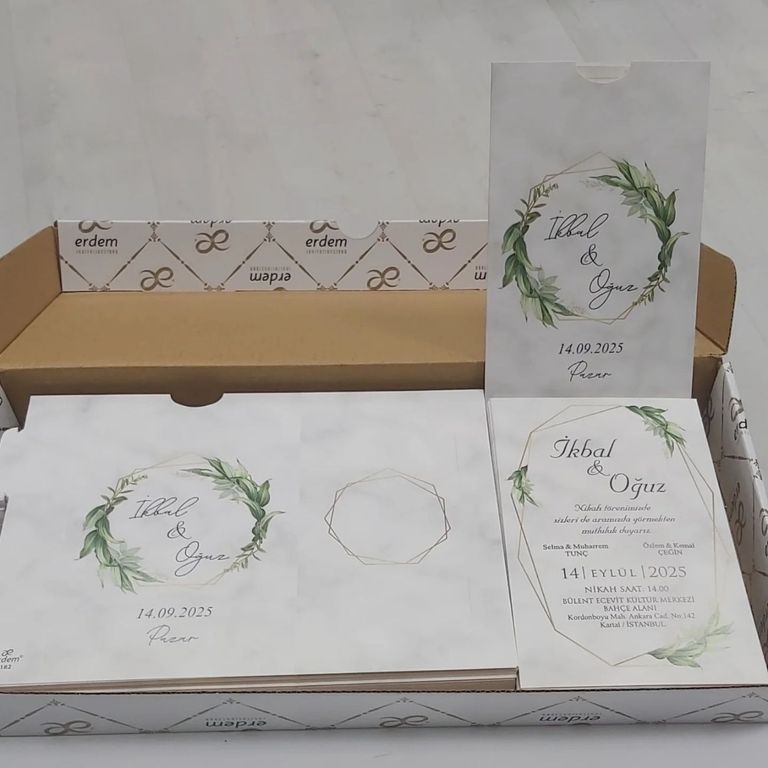 - Çiçekli davetiye, floral desenleri ve renkli detaylarıyla davete romantik ve yumuşak bir atmosfer kazandırır.