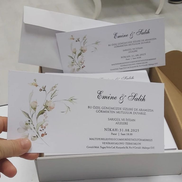 - Çiçekli davetiye, floral desenleri ve renkli detaylarıyla davete romantik ve yumuşak bir atmosfer kazandırır.