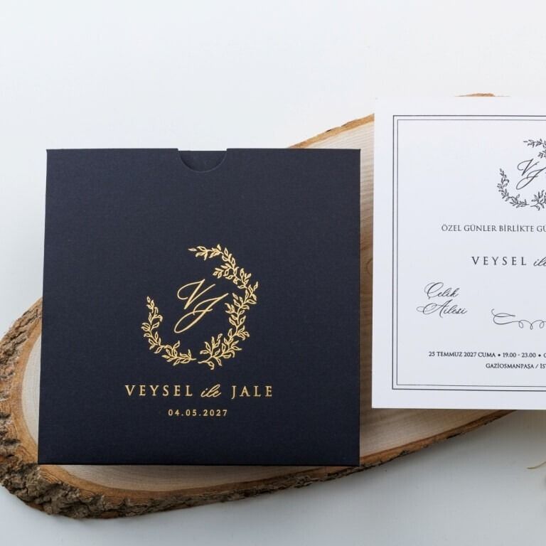 - Altın varak detayı davetiye tasarımına ışıltı ve şıklık katar.