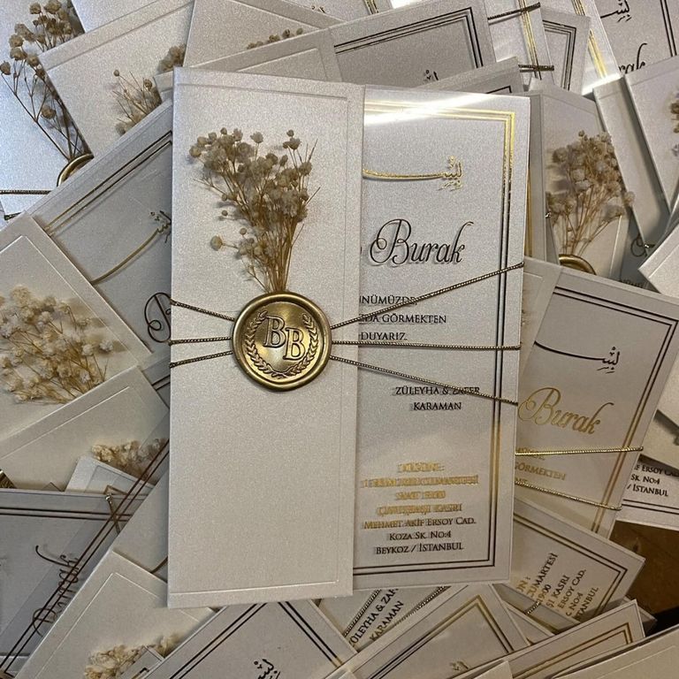 3. Altın varak detayı davetiye tasarımına ışıltı ve şıklık katar.