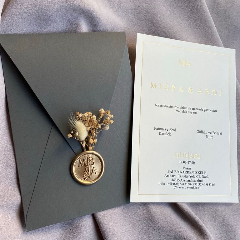 - Altın varak detayı davetiye tasarımına ışıltı ve şıklık katar.