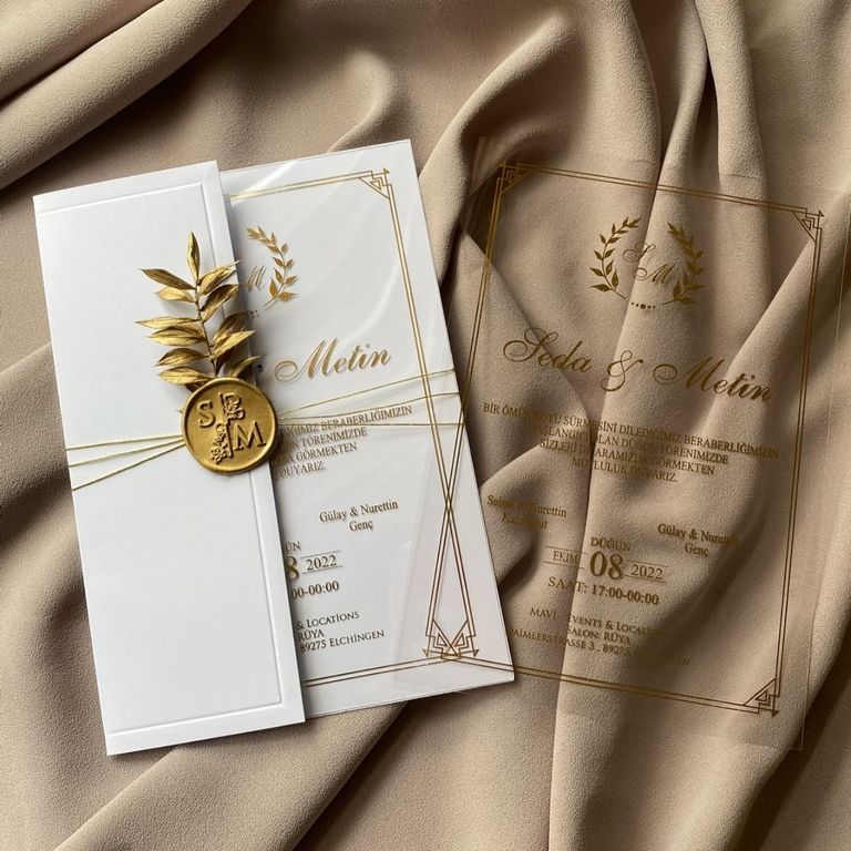3. Altın varak detayı davetiye tasarımına ışıltı ve şıklık katar.