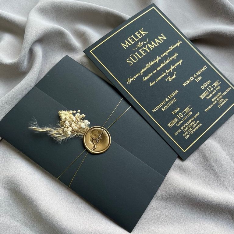 3. Altın varak detayı davetiye tasarımına ışıltı ve şıklık katar.