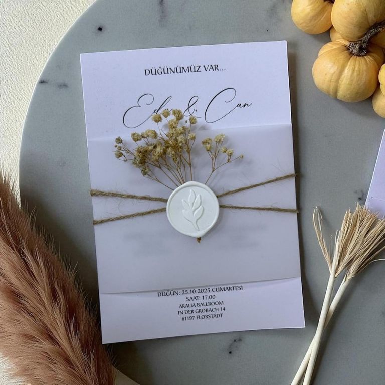 - Mühürlü davetiye, mühür detayıyla klasik davetiye geleneğine zarif bir gönderme yapar.