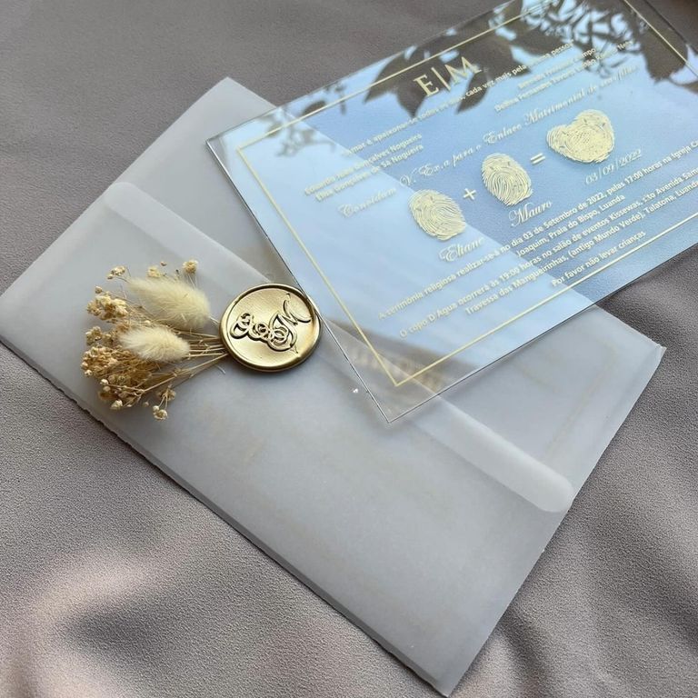 - Şeffaf davetiye, cam görünümlü yüzeyiyle modern ve hafif bir tasarım etkisi yaratır.