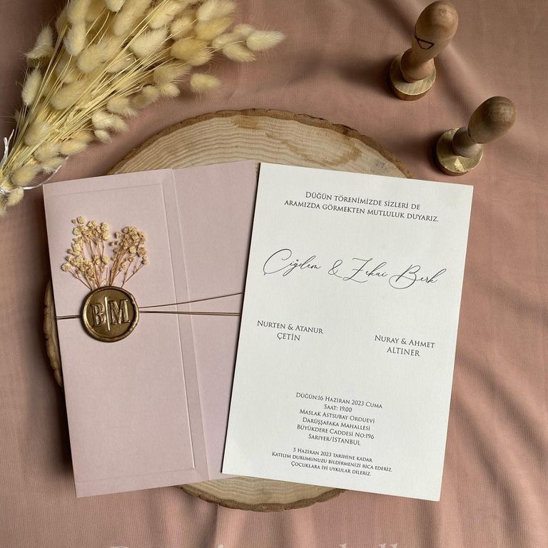 - Mühürlü davetiye, mühür detayıyla klasik davetiye geleneğine zarif bir gönderme yapar.