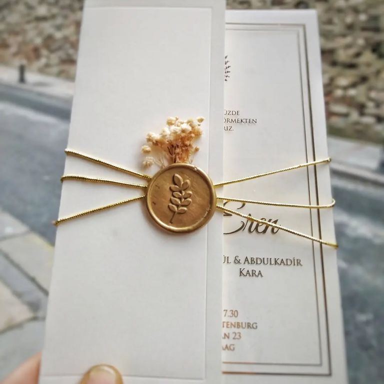 - Altın varak detayı davetiye tasarımına ışıltı ve şıklık katar.