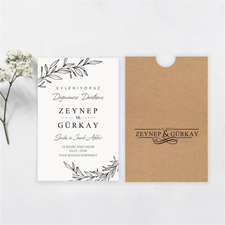 - Çiçekli davetiye, floral desenleri ve renkli detaylarıyla davete romantik ve yumuşak bir atmosfer kazandırır.