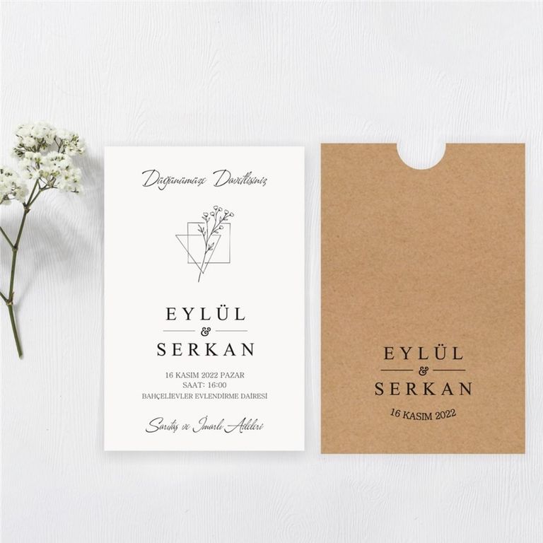 - Sade davetiye, minimal tasarımıyla yazı ve grafik detayların net şekilde öne çıkmasını sağlar.