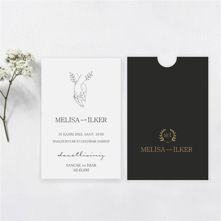 - Sade davetiye, minimal tasarımıyla yazı ve grafik detayların net şekilde öne çıkmasını sağlar.