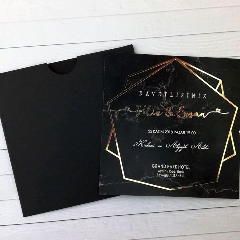 2. Altın varak detayı davetiye tasarımına ışıltı ve şıklık katar.