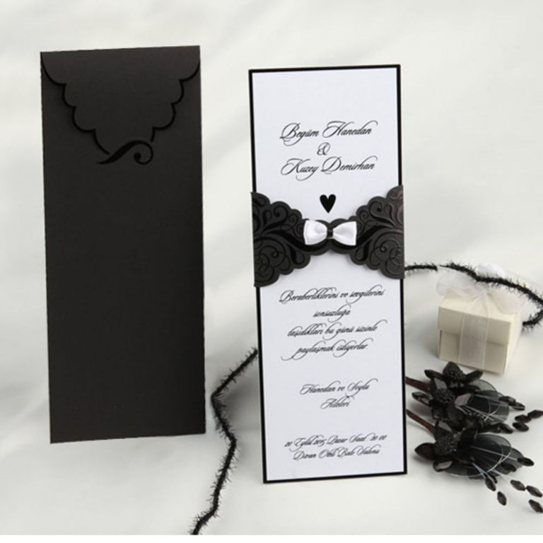 Kitap Ayracı Formunda Siyah-Beyaz Davetiye