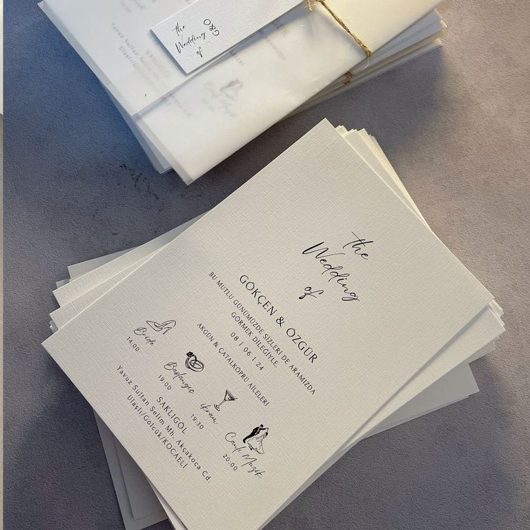 - Sade davetiye, minimal tasarımıyla yazı ve grafik detayların net şekilde öne çıkmasını sağlar.