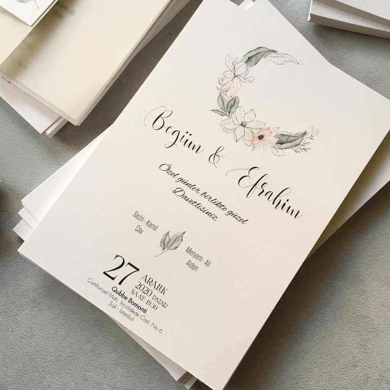 - Çiçekli davetiye, floral desenleri ve renkli detaylarıyla davete romantik ve yumuşak bir atmosfer kazandırır.