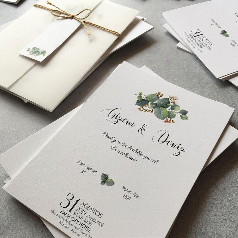 - Sade davetiye, minimal tasarımıyla yazı ve grafik detayların net şekilde öne çıkmasını sağlar.