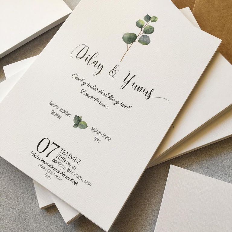 - Sade davetiye, minimal tasarımıyla yazı ve grafik detayların net şekilde öne çıkmasını sağlar.