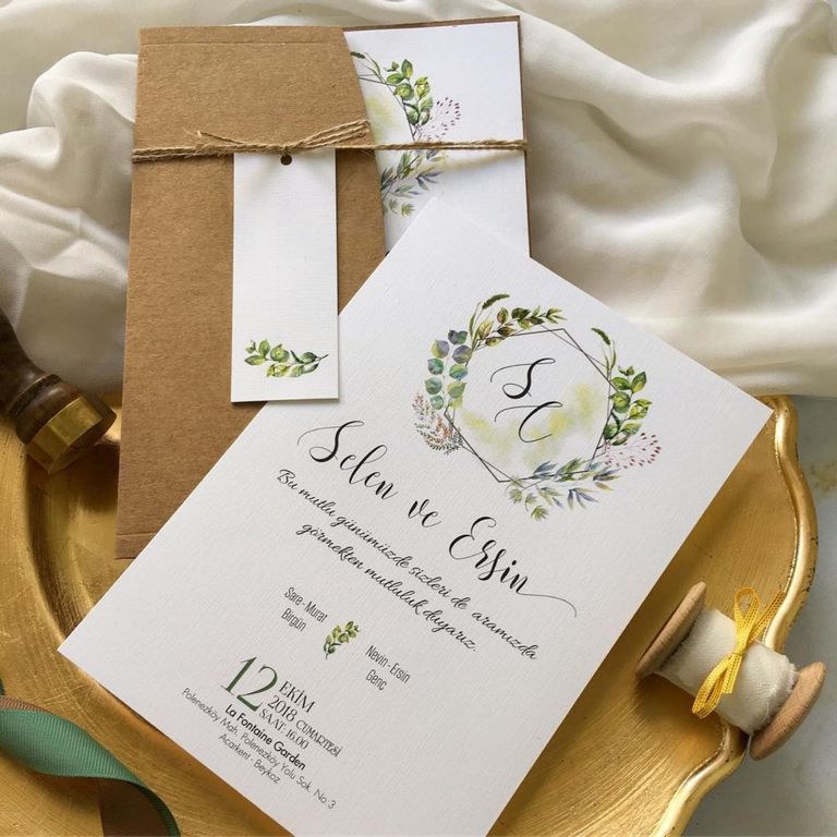 - Çiçekli davetiye, floral desenleri ve renkli detaylarıyla davete romantik ve yumuşak bir atmosfer kazandırır.