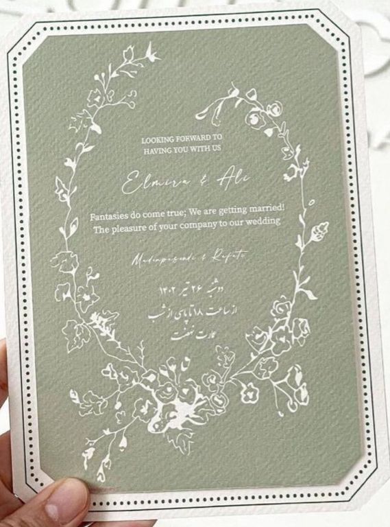 Haki renkte çiçek desenli vintage tarzda davetiye