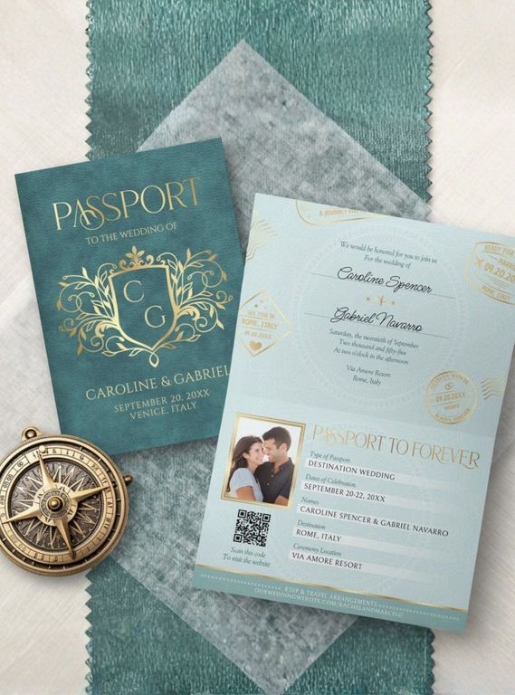 2. Pasaport davetiye, seyahat temalı kurgusuyla daveti eğlenceli ve dikkat çekici bir formda sunar.