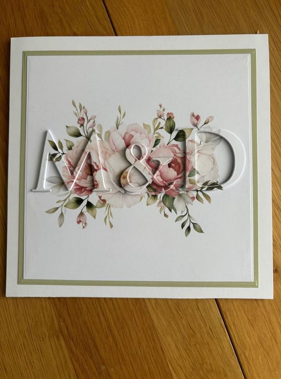 Üç boyutlu harf detaylı, çiçekli davetiye
