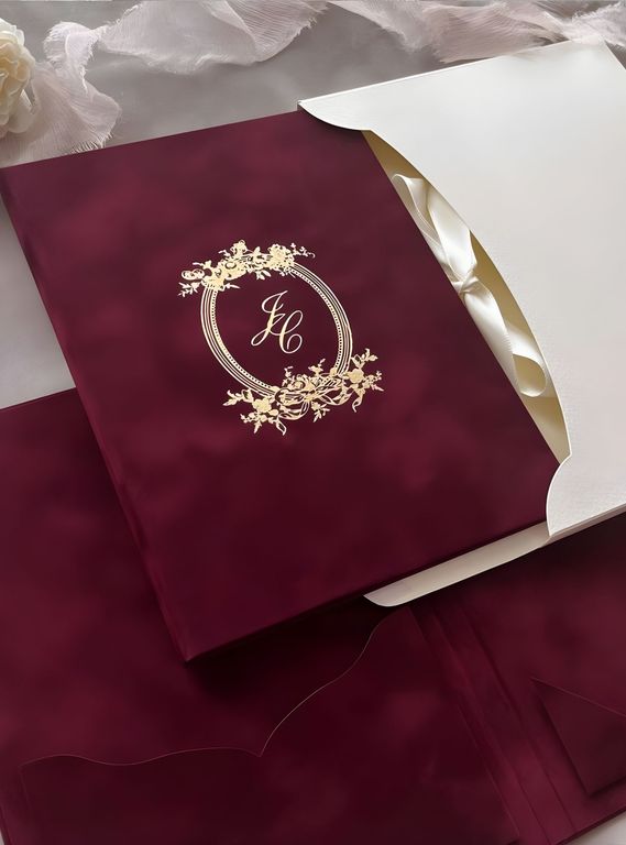 Monogramlı Kadife Dokulu Davetiye