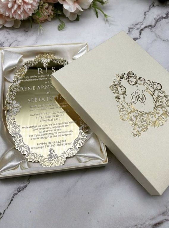 Altın varak detayı davetiye tasarımına ışıltı ve şıklık katar.