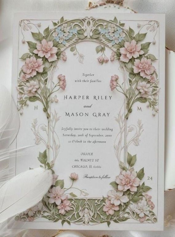 - Çiçekli davetiye, floral desenleri ve renkli detaylarıyla davete romantik ve yumuşak bir atmosfer kazandırır.
