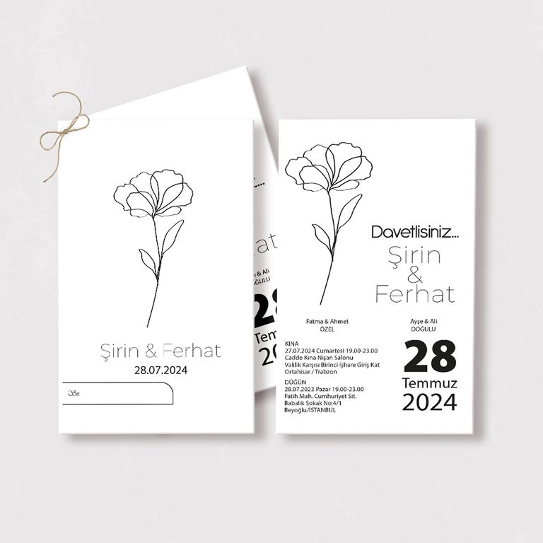 - Sade davetiye, minimal tasarımıyla yazı ve grafik detayların net şekilde öne çıkmasını sağlar.
