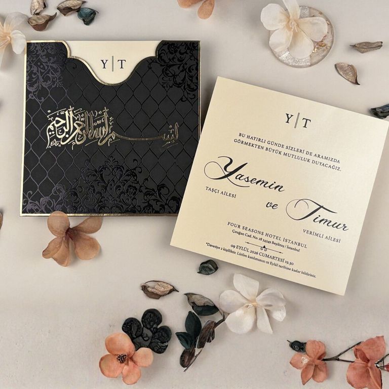 2. Altın varak detayı davetiye tasarımına ışıltı ve şıklık katar.