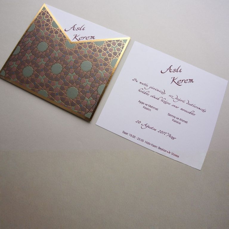 - Altın varak detayı davetiye tasarımına ışıltı ve şıklık katar.
