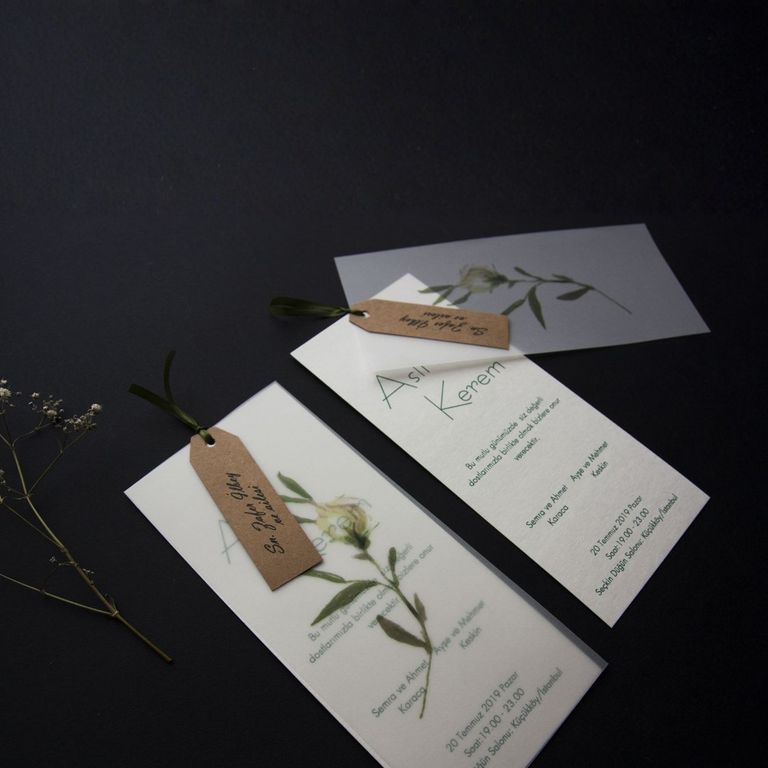 - Çiçekli davetiye, floral desenleri ve renkli detaylarıyla davete romantik ve yumuşak bir atmosfer kazandırır.