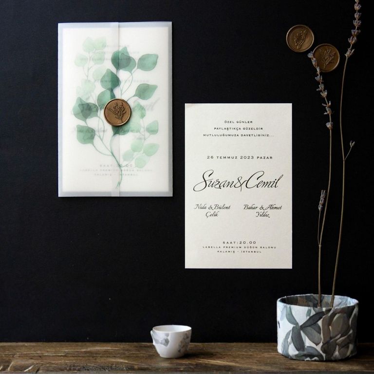 - Mühürlü davetiye, mühür detayıyla klasik davetiye geleneğine zarif bir gönderme yapar.