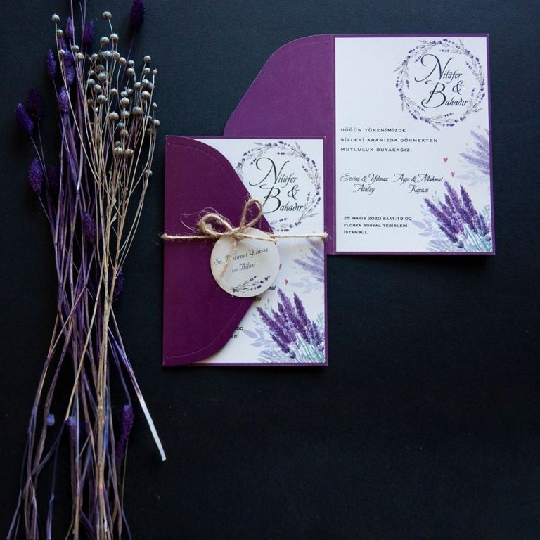 - Çiçekli davetiye, floral desenleri ve renkli detaylarıyla davete romantik ve yumuşak bir atmosfer kazandırır.