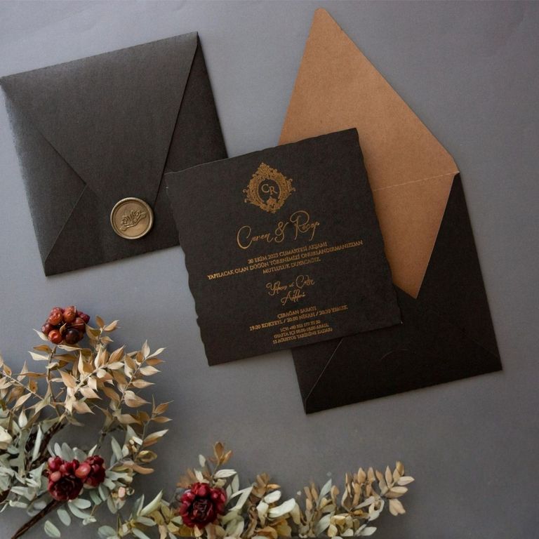 Mühürlü davetiye, mühür detayıyla klasik davetiye geleneğine zarif bir gönderme yapar.