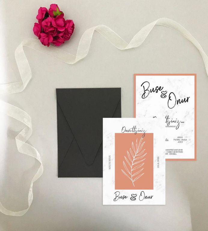 - Çiçekli davetiye, floral desenleri ve renkli detaylarıyla davete romantik ve yumuşak bir atmosfer kazandırır.