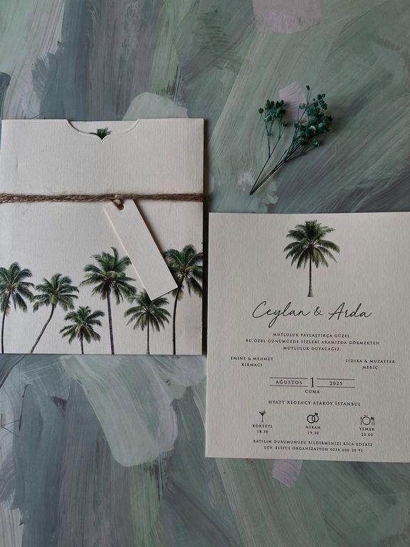 - Çiçekli davetiye, floral desenleri ve renkli detaylarıyla davete romantik ve yumuşak bir atmosfer kazandırır.