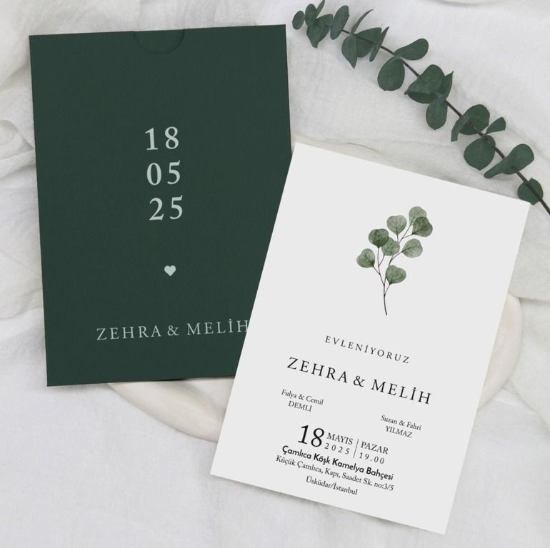 - Sade davetiye, minimal tasarımıyla yazı ve grafik detayların net şekilde öne çıkmasını sağlar.
